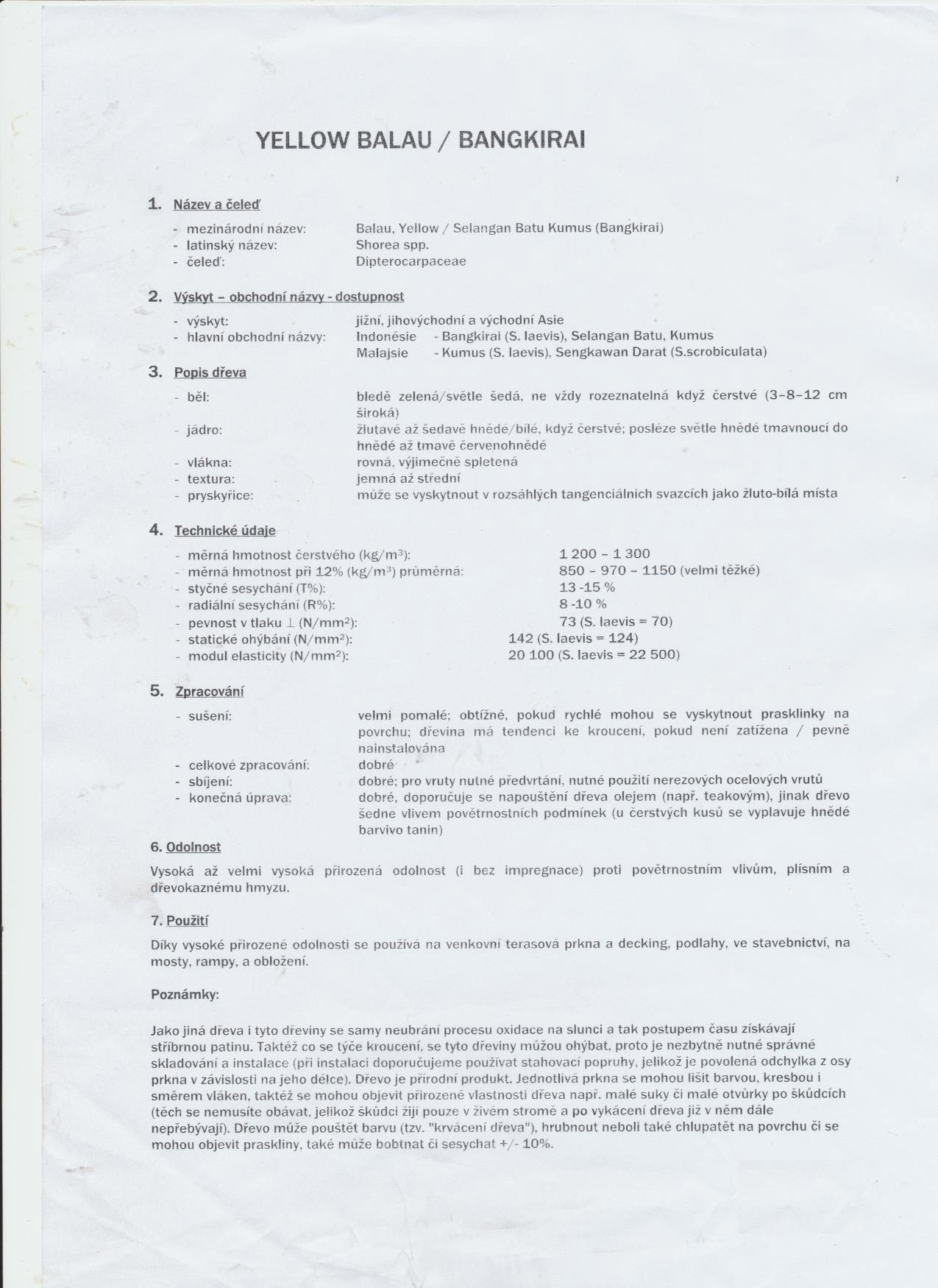 Opis a technické údaje Yellow balau / Bangkirai